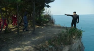 Jun-ho, satisfied that he has all the evidence he needs for the case on his phone, then escapes from the facility using one of the dive packs. The Front Man and several workers go after him in a speedboat. He eventually reaches an unknown island. Here he calls his chief, who he asks to send backup. He also tries to send the evidence, but there is not enough signal. The Front Man and workers reach the island soon after Jun-ho, and he runs higher up the island in an attempt to escape.